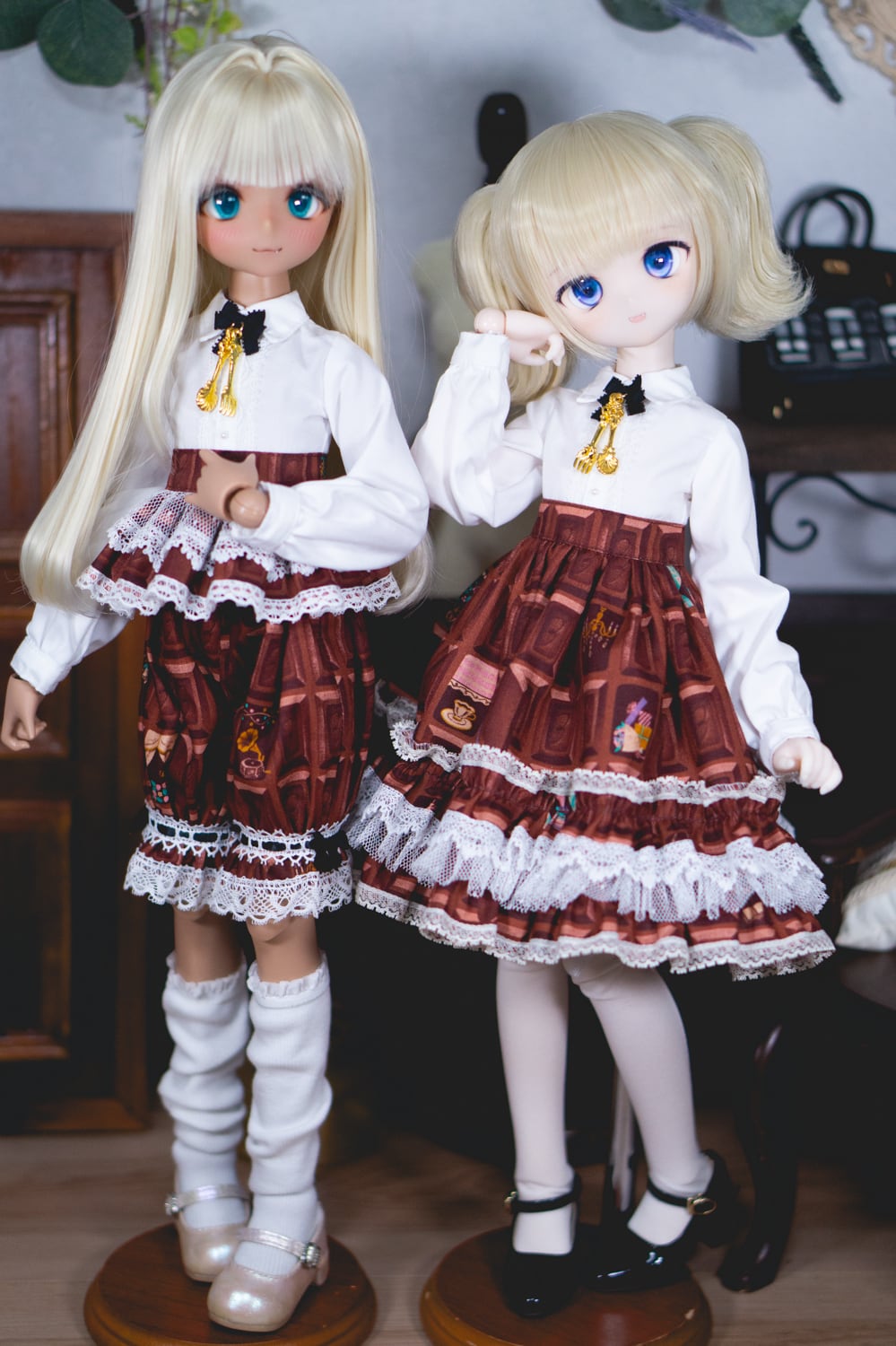 共に胸元にはフォークとスプーンのチャーム付きです。