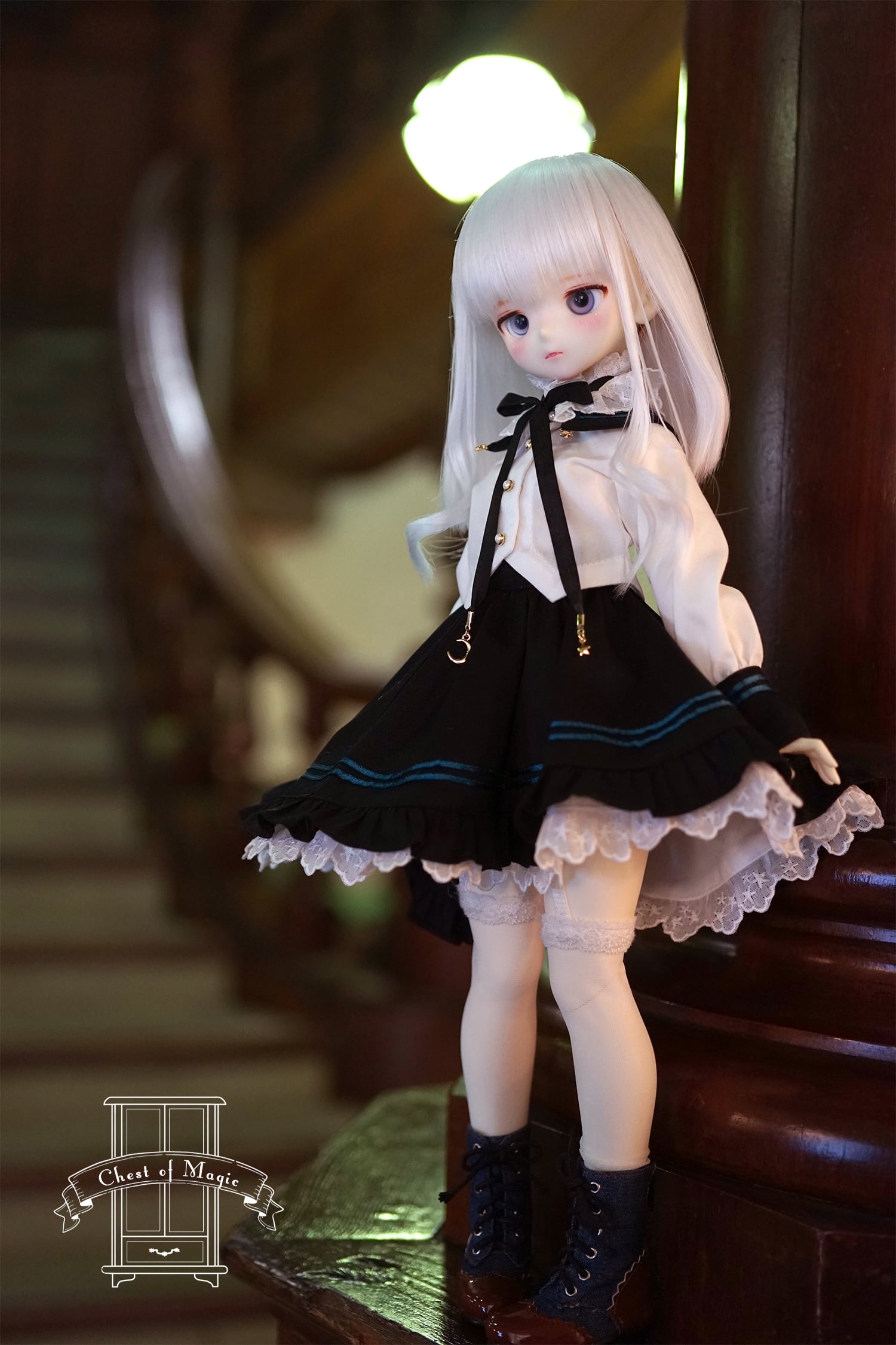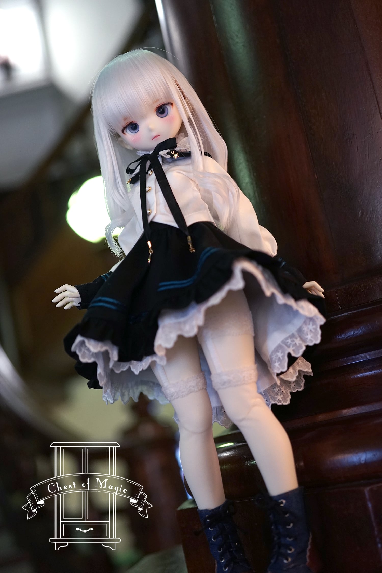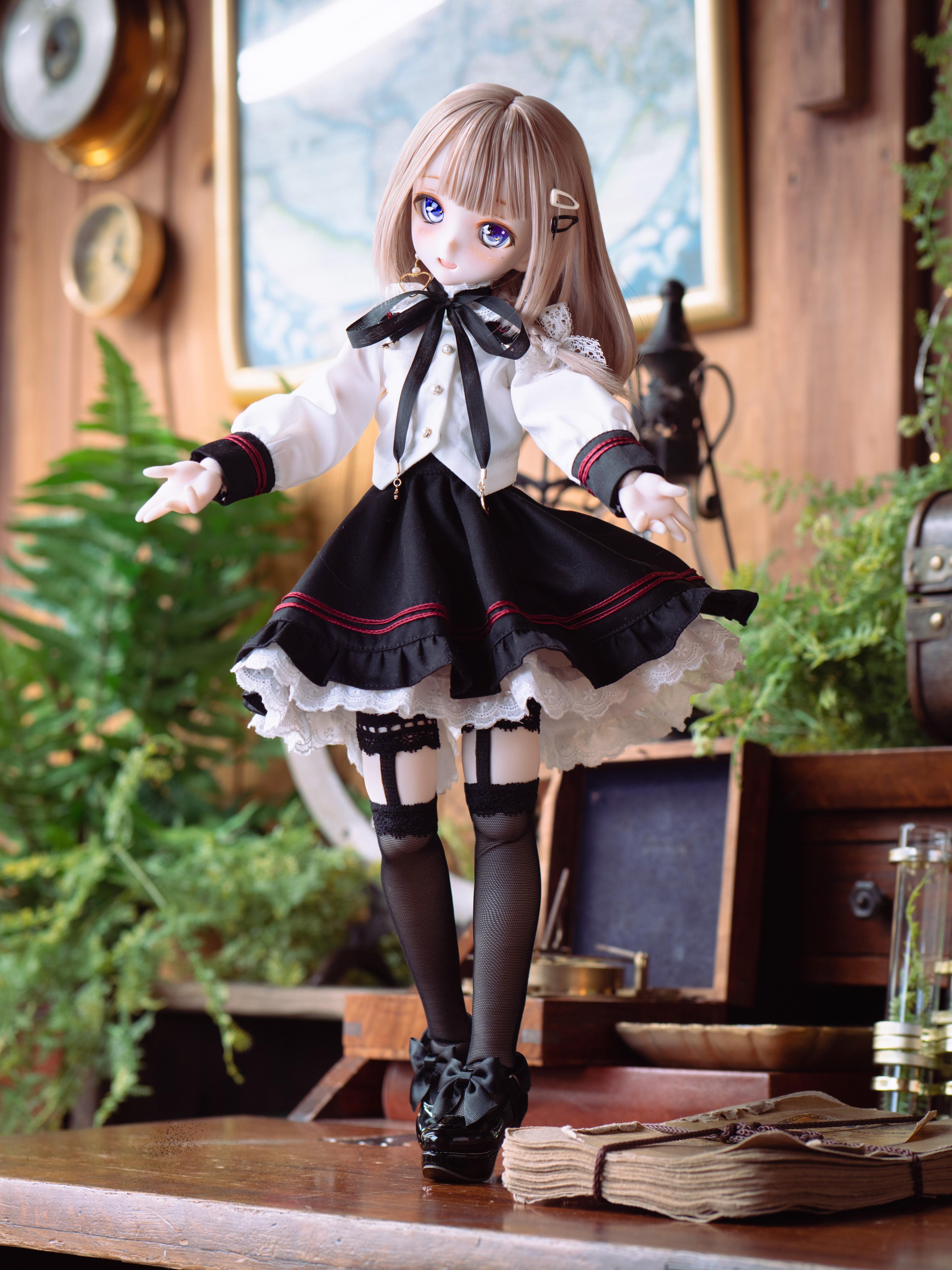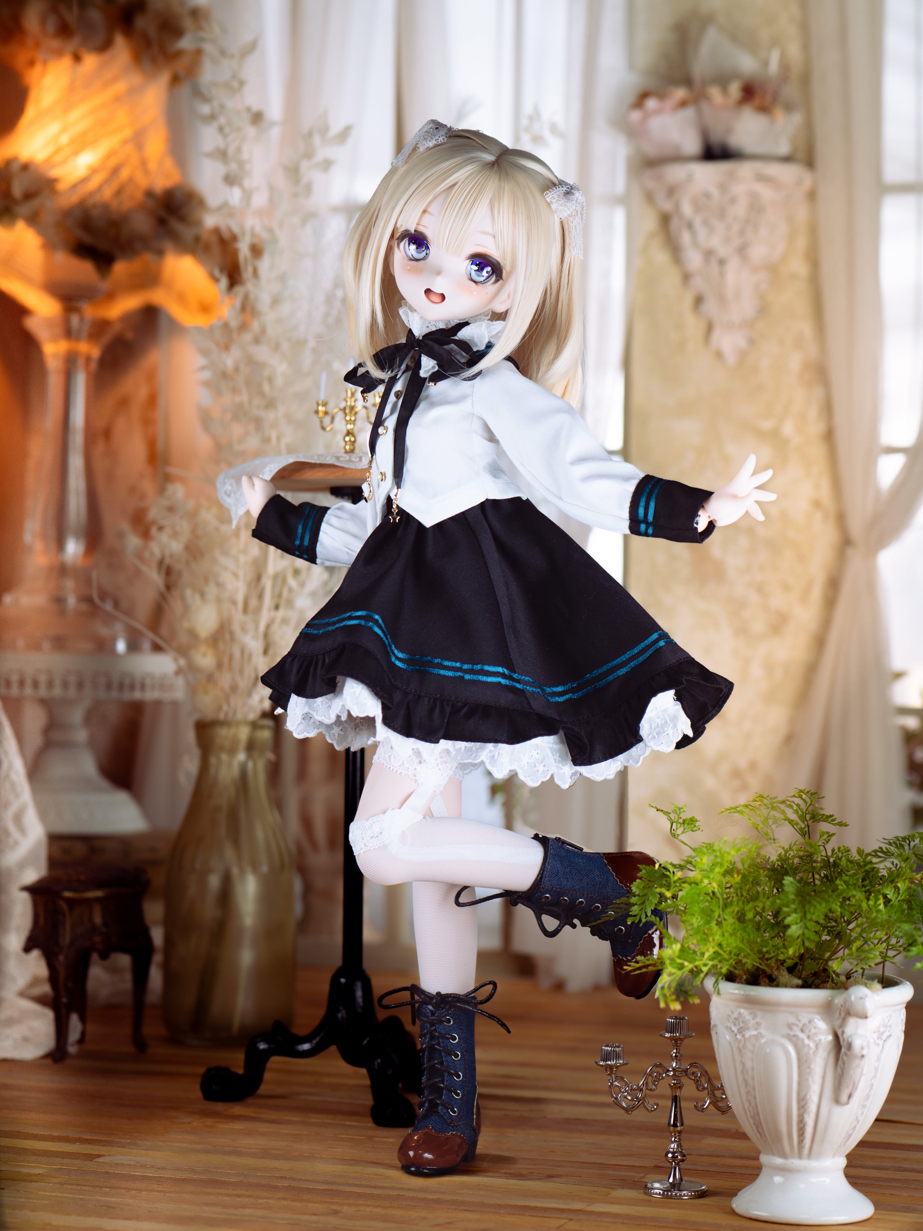 付け襟にはリバーレース、綿レースを使用し、リボンの先端に月と星のチャームを飾りつけました。